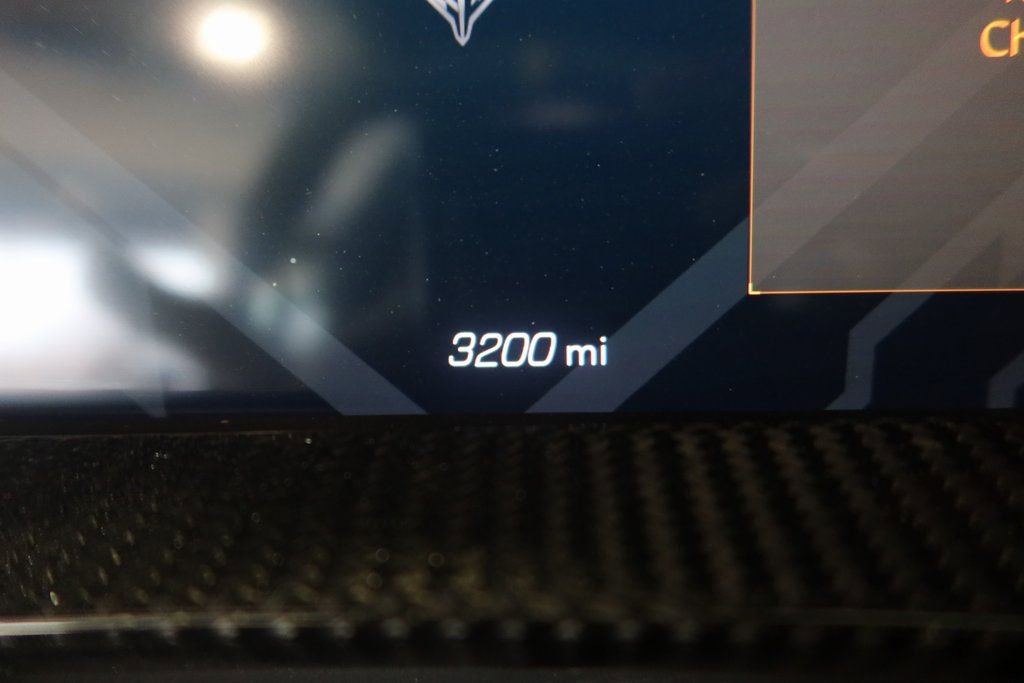 Enhancing the driving dynamics, this Corvette Z06 is equipped with a Battery Protection Package, Bright Red-Painted Calipers, and a set of stunning 20-inch front and 21-inch rear Black Forged Aluminum wheels. The Carbon Flash Metallic-Painted Outside Mirrors and Spoiler add a touch of elegance and aggression to the overall design.