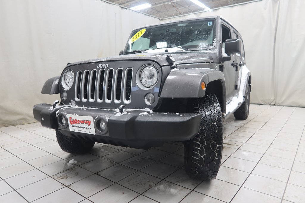 2017 Jeep Wrangler Unlimited Sahara Unlimited Sahara Granite Crystal Metallic Clearcoat 3.6L V6 24V VVT 5-Speed Automatic 4WDOdometer is 16713 miles below market average!Awards:* 2017 KBB.com 10 Most Awarded Brandshttps://www.kbb.com/kbbreport/6rzeiGateway Automotive - Excellence Beyond Expectation! www.gatewayfargo.com , Excellent selection of New and Used vehicles, Financing Options, All Used Vehicles have been Fully Inspected, Detailed, and Vehicle Oil Change completed. We proudly serve Fargo, Grand Forks, Moorhead, Dilworth, Glyndon, Jamestown, Valley City, Bismarck, Wahpeton, Lisbon, Casselton, Sioux Falls, Barnesville, Rothsay, Detroit Lakes, greater Minneapolis area, North Dakota. Special offers and pricing are subject to location and dealer discretion. Available to residents of the greater Fargo, ND Moorhead, MN and Red River Valley areas.