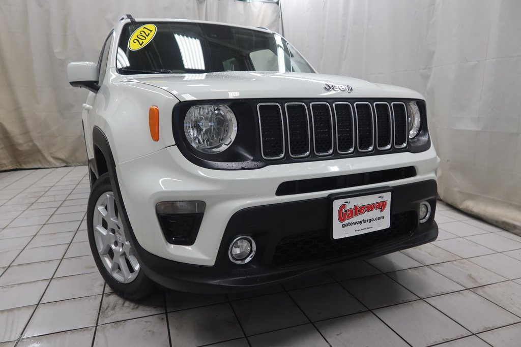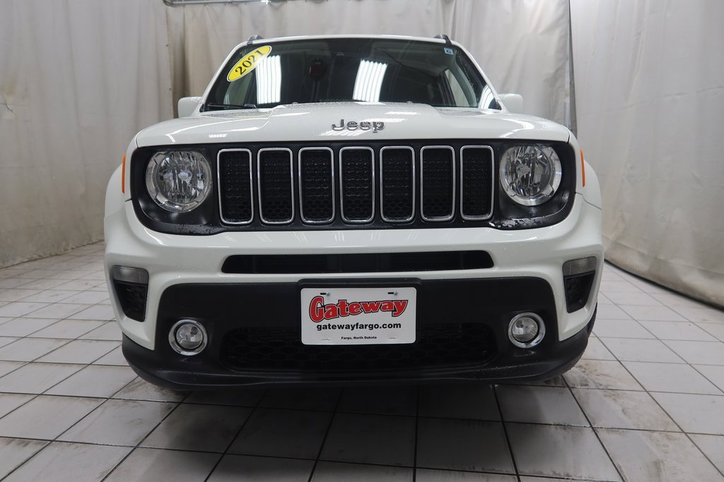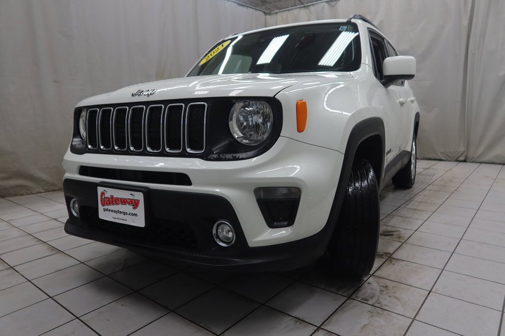 2021 Jeep Renegade Latitude Latitude Alpine White Clearcoat 2.4L I4 9-Speed 948TE Automatic 4WD*Adaptive Cruise Control, Touchscreen Controls, Backup Camera, Automatic Headlights, Voice Recognition, AWD / 4x4 / Four Wheel Drive.Odometer is 14444 miles below market average! 21/29 City/Highway MPGhttps://www.kbb.com/kbbreport/ha6fmGateway Automotive - Excellence Beyond Expectation! www.gatewayfargo.com , Excellent selection of New and Used vehicles, Financing Options, All Used Vehicles have been Fully Inspected, Detailed, and Vehicle Oil Change completed. We proudly serve Fargo, Grand Forks, Moorhead, Dilworth, Glyndon, Jamestown, Valley City, Bismarck, Wahpeton, Lisbon, Casselton, Sioux Falls, Barnesville, Rothsay, Detroit Lakes, greater Minneapolis area, North Dakota. Special offers and pricing are subject to location and dealer discretion. Available to residents of the greater Fargo, ND Moorhead, MN and Red River Valley areas.*
