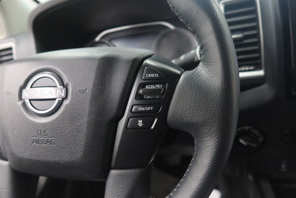 The Frontier SV's thoughtful design and premium features elevate your driving experience. Enjoy the convenience of the Fender Premium Audio System, dual-zone automatic climate control, and the intuitive touchscreen interface. Stay connected with seamless integration of Apple CarPlay and Android Auto, and feel secure with advanced safety technologies like Blind Spot Warning, Lane Departure Warning, and Intelligent Cruise Control.