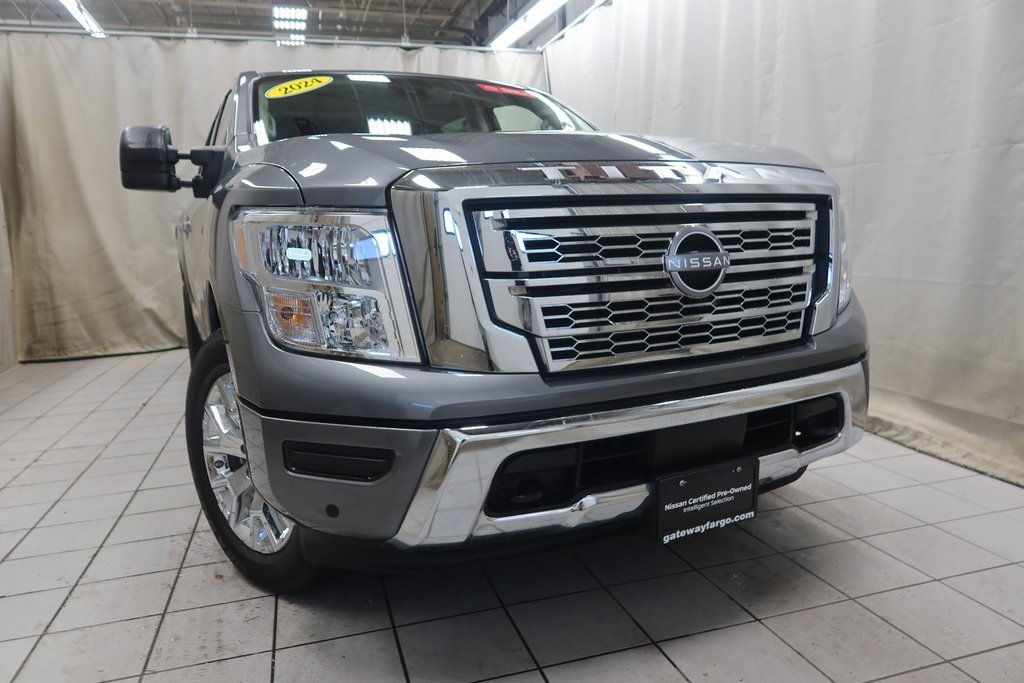Certified.2024 Nissan Titan SV SV Gun Metallic 5.6L V8 DOHC 32V LEV3-ULEV70 400hp 9-Speed Automatic 4WD*Adaptive Cruise Control, Heated Seats, Touchscreen Controls, Backup Camera, Automatic Headlights, Voice Recognition, REMOTE START, AWD / 4x4 / Four Wheel Drive, 4WD.Odometer is 4568 miles below market average!https://www.kbb.com/kbbreport/0ri7gGateway Automotive - Excellence Beyond Expectation! www.gatewayfargo.com , Excellent selection of New and Used vehicles, Financing Options, All Used Vehicles have been Fully Inspected, Detailed, and Vehicle Oil Change completed. We proudly serve Fargo, Grand Forks, Moorhead, Dilworth, Glyndon, Jamestown, Valley City, Bismarck, Wahpeton, Lisbon, Casselton, Sioux Falls, Barnesville, Rothsay, Detroit Lakes, greater Minneapolis area, North Dakota. Special offers and pricing are subject to location and dealer discretion. Available to residents of the greater Fargo, ND Moorhead, MN and Red River Valley areas.*